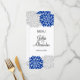 © 2013 Socialite Designs. Notre élégante carte de menu mariage personnalisée présente des fleurs de couleur bleu royal et gris argenté à l'avant et à l'arrière. Le devant comprend les noms du couple et la date du mariage. L'arrière comprend les éléments de menu. Veuillez contacter Socialite Designs si vous avez besoin d'aide pour customiser cette carte de menu pour votre événement.