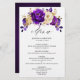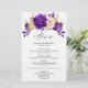Elégante carte de mariages à thème royal violet or avec élégant bouquet de violet royal, Indigo, or, bourgeons de fleurs roses couleur jaune et des feuilles d'eucalyptus. Veuillez me contacter pour toute aide sur la personnalisation ou si vous avez besoin d'un autre produit avec ce design.