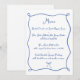 Menu de Mariage Ruban et Nœud Dessiné à la Main Bleu Français avec police style écriture manuscrite.