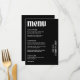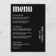 Menu mariage moderne avec un design simple et minimal avec une typographie audacieuse en blanc sur un arrière - plan noir. Les couleurs peuvent être modifiées en n'importe quelle couleur que vous choisissez dans l'outil d'édition de conception. Cette carte mariage contemporaine est idéale pour un mariage à thème gothique ou halloween.