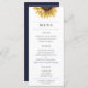 Tournesol rustique aquarelle, carte de menu mariage moderne. Le modèle offre un espace pour les noms, les dates et les trois titres du menu avec des descriptions. Couleur d'emballage illustrée dans la coordination bleu marine foncé, peut être customisé.