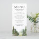 Elégant menu de mariage avec de belles montagnes et des pins avec typographie moderne.