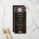 Un design rustique avec une bordure supérieure de roses peints lustres dans les tons de rose violet poussiéreux sur un riche arrière - plan en bois foncé. Le fond du menu affiche un petit bouquet au centre. Vous pouvez ajouter vos détails et votre propre menu dans l'onglet Modifier la conception. Cela fait partie d'une belle suite mariage assortie qui peut être entièrement personnalisée.