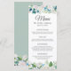 Carte de menu Mariage floral Sage Green Blue White Peonies.