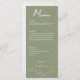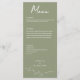 Ce Sage Green Floral Formal Elegant Wedding Menu présente des fleurs délicates sur un arrière - plan vert sage, avec typographie moderne et calligraphie script. Il est entièrement personnalisable avec les noms du couple, la date du mariage, les options de menu pour chaque cours, et l'espace pour d'autres informations sur le côté inverse. La conception et le libellé formels ajouteront une touche d'élégance à votre célébration mariage.