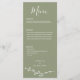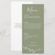 Ce Sage Green Floral Formal Elegant Wedding Menu présente des fleurs délicates sur un arrière - plan vert sage, avec typographie moderne et calligraphie script. Il est entièrement personnalisable avec les noms du couple, la date du mariage, les options de menu pour chaque cours, et l'espace pour d'autres informations sur le côté inverse. La conception et le libellé formels ajouteront une touche d'élégance à votre célébration mariage. Tous mes designs peuvent être transférés à tout produit que Zazzle transporte. Pour toute demande de design personnalisée ou de demande de renseignements, envoyez-moi un message. Pour les demandes de renseignements, les retours et les échanges de commandes, veuillez contacter l'équipe de support à la clientèle de Zazzle à l'adresse https://www.zazzle.com/about/ask. ©PoppyMeadowDesigns 2023-2025