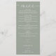 Cet élégant menu mariage de script de coeur vert sauge peut être personnalisé avec vos informations dans la typographie chic. Conçu par Thisisnotme©