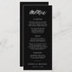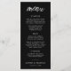 Cette carte de menu mariage présente un script moderne captivant qui donne un ton élégant à votre réception. Le design noir et blanc crée un contraste audacieux, tandis que les éléments du menu sont élégamment affichés dans les sections pour faciliter la navigation. Cette carte vous impressionnera certainement et fera de votre menu mariage une partie de la fête.
