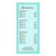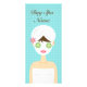 L'illustration de Destei d'une femme brune portant une serviette sur la tête et le corps et portant un masque blanc sur le visage avec des concombres sur les yeux et une fleur rose à l'oreille. La couleur arrière - plan est bleu clair doux avec un joli motif pois. De l'autre côté de la carte, il y a des zones de texte personnalisables pour les options de service. Ce produit est parfait pour un spa de jour, un centre de villégiature spa, un salon de beauté, un cosmétologiste ou pour une masseuse/massothérapeute par exemple.