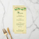 Elégante carte de mariage avec frontière en fer à cheval shamrock et or pour symbole irlandais de chance. Arrière - plan de teinte dorée douce aux motifs floraux subtils. Customisez le avec vos informations de menu. Merveilleux thème pour un Mariage de printemps ou irlandais. Thème correspondant disponible sur d'autres produits dans mon magasin.