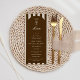 Birthday menu card featuring a hand-drawn coffee martini glass and coffee beans paired with elegant script and serif fonts in which your personalized information is written. The background is brown stripes on a light background. Check out our store for more items from this collection.