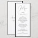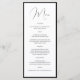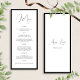 Elevate your wedding reception with this Simple Classy Black & White Border Script Wedding Menu. Designed with timeless elegance in mind, this menu features a clean black and white color palette accented by a refined border and graceful script typography. The minimalist layout ensures your menu items are easy to read while adding a sophisticated touch to your table décor. Perfect for formal, modern, or classic weddings, this design complements a wide range of themes and color schemes, making it a beautiful and versatile choice for your special day.