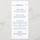 Menu mariage moderne avec un design simple avec le titre, "menu" dans un élégant script manuscrit avec des swashes et vos descriptions de cours dans une police bleu marine sans serif, sur un arrière - plan blanc. L'arrière est assortie d'une teinte bleu marine. Un design simple et épuré, parfait pour le minimaliste.