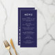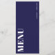 Vous recherchez un menu de mariage élégant ? Regardez notre menu Mariage moderne Simple Navy Blue and White Bold Modern. Doté d'une calligraphie audacieuse qui ajoute une touche de sophistication, ce menu mariage bleu marine offre un look simple et épuré. Ce menu mariage minimaliste a une touche moderne qui ravira les amateurs de sophistication subtile.