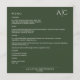 Menu Simple Moss foncé vert Monogramme Réception de mar