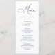 Elégant et moderne, menu plat minimaliste bleu marine. Menu entièrement personnalisable pour votre mariage ou événement.