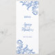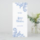 © 2018 Socialite Designs Inc. Beaux tourbillons et fleurs d'angle, peints à la main dans l'aquarelle bleu roi doux, cartes de menu qui complètent la collection mariage correspondante.