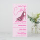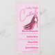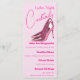 Ce menu personnalisé séduisant est décoré sur le thème du Cocktail Dames de nuit. Le titre "Cocktails" est imprimé sur le dessus dans une police de script rose néon. Une brillante paire de stilettos roses est placée sous le titre de l'événement, suivie d'une variété d'échantillons de boissons.