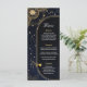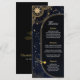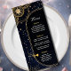 Insufflez à votre réception une élégance céleste grâce à ce menu Mariage Elégant Soleil et Lune en noir et or. Conçu contre un riche arrière - plan noir, le design présente des illustrations brillantes en faux or du soleil et de la lune du croissant, délicatement entouré d'étoiles scintillantes et de détails cosmiques ornés. La disposition du menu est propre et raffinée, ce qui permet à vos délicieux plats de briller tout en faisant écho à la mystique romance des étoiles. Parfait pour une célébration à thème céleste, ce menu ajoute une touche de magie et de sophistication à votre cadre de table.