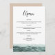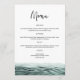 Ce menu comporte une aquarelle océanique turquoise et une police manuscrite pointue. Utilisez ce modèle pour modifier les polices, la couleur de police et la couleur de l'arrière - plan afin de répondre aux besoins de votre événement. Associez-vous à d'autres articles de la collection SOPHIA pour un look cohésif.