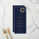Carte de menu mariage personnalisée étoilée mystique de nuit avec galaxie laiteuse ciel de minuit avec poussière d'étoile, lune de croissant et autres symboles astrologiques en bleu marine et couleurs dorées. Cette carte est facilement modifiable. Si vous avez besoin d'aide pour la personnalisation de cette carte ou si vous avez besoin de plus de produits correspondants pour cette collection, envoyez-moi un message aimable via Zazzle.
