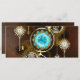 Turquoise lenses with antique watch with brass gears and golden keys on rusty, brown background. Steampunk style.