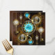 Turquoise lenses with antique watch with brass gears and golden keys on rusty, brown background. Steampunk style.