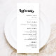 Mangeons ! menu mariage ou réception. Un thème rétro chic : adoptez ce design typographique légèrement vintage et élégant pour votre papeterie mariage, avec un thème classique noir et blanc. Texte, couleurs et arrière - plans personnalisables.