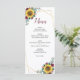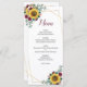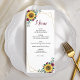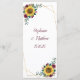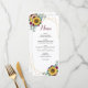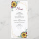 Ces menus de mariage élégants présentent un design floral aquarelle avec des roses bordeaux de tournesols et une bordure géométrique en faux or. Personnalisez le texte avec vos noms et le menu. Produits correspondants également disponibles.