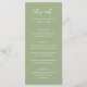 Menu mariage moderne avec un design typographique contemporain avec "mangeons" dans une élégante typographie de script. Vous trouverez ci-dessous les détails de votre événement dans votre nom, date du mariage et menu dans une mise en page simple et minimale. Le thème de couleur est vert sage et peut être modifié par l'outil d'édition de conception.