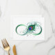 Le symbole de l'infinity with a bright, green, artistic peacock feather on a white background. Tattoo style.