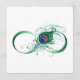 Le symbole de l'infinity with a bright, green, artistic peacock feather on a white background. Tattoo style.
