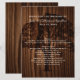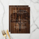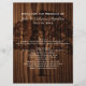 Grand menu de table mariage dans un style bois foncé, avec des grains foncés. Graphiques de silhouette d'arbre dans un ton de bois foncé, décorent le milieu du menu. Le texte en ivoire crémeux est prêt à être personnalisé pour votre réception de mariage.