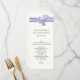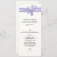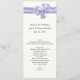 Menu long et maigre de table mariage réalisé en ivoire avec des graphismes élégants d'un ruban et d'un arc en satin lavande, en haut du menu. Personnalisez tout le texte pour convenir à votre menu de réception de mariage.