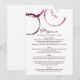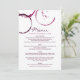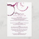 Conception chic et rustique de carte de menu avec tache de vin rouge burgundy, comprenant du texte personnalisé pour la date de l'événement, le menu et les informations d'accord mets-vins.