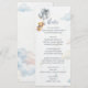 This adorable Menu design features a sweet watercolor teddy bear with soft blue balloons, fluffy clouds, and a large blue bow, creating a charming and playful look perfect for a baby boy celebration. The gentle blue tones and cute teddy bear artwork, combined with the decorative bow, make the menu both functional and stylish, fitting beautifully into the teddy bear baby shower theme.