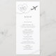 Chic, moderne et minimal thème de voyage répétition dîner ou carte de menu de mariage de destination avec un simple logo gris noir et blanc de coeur d'avion monogramme au sommet et la conception de typographie rétro. Toutes les couleurs et les polices peuvent être modifiées pour correspondre au thème voyage, aventure ou voyage d'affaires de votre événement.