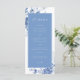 Faites votre journée de mariage de façon unique avec notre menu de dîner floral bleu toile personnalisable avec monogramme. Il s'agit d'un complément parfait à votre papeterie de jour de mariage, ou à votre dîner de répétition, fête de fiançailles, douche nuptiale ou baby shower. Personnalisez votre texte pour un ajout élégant à votre mariage et imprimez facilement avec Zazzle!