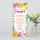 Ajoutez une touche tropicale à votre célébration avec cette carte de menu de fête de fiançailles luau, avec des fleurs d'hibiscus colorées, des fougères luxuriantes et un flamant rose ludique. Entièrement personnalisable avec votre menu d'événement, vos noms et votre date, c'est le détail parfait pour un dîner de fiançailles sur le thème hawaïen, au bord de la plage ou dans votre jardin. Se coordonne avec la suite d'invitation luau complète pour un look cohérent.