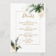 Menu Tropical Foliage Gold & Green Mariage Bar Boissons