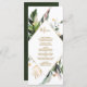Ce menu mariage est composé de feuilles de palmiers d'aquarelle, de feuilles de bananes, de feuilles tropicaux exotiques et de feuilles en faux or avec un cadre en faux diamant d'or. Il est parfait pour un mariage tropical, plage, été ou destination.