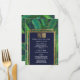 Elégante, chic et moderne plage tropicale faux imprimé or triple bordures et fronde de palmier vert et feuilles de banane sur bleu marine avec faux imprimé feuille d'or typographie été, carte de menu de réception de mariage. Ce design classique et sophistiqué est parfait pour une réception de mariage classe, élégante et branchée. Personnalisez avec votre propre menu sur le devant, avec vos noms et dates. Customisez ensuite le dos avec votre monogramme initial. Toute la conception d'impression photo.