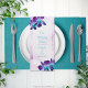 Menu mariage de fleurs Dendrobium bleu turquoise et violet avec arrière - plan couleur violet et turquoise et et déchiqueté arrière - plan de papier à regarder pour le libellé du menu mariage. Ce type d'orchidée est violet violet et turquoise ou bleu turquoise en couleur et est appelé une orchidée bleue Dendrobium. Il y a aussi d'autres tons de violet et de bleu ou de turquoise dans cette fleur. Cette fleur d'orchidée particulière est très abordable et est souvent utilisée dans les thèmes mariages paon. L'arrière - plan de ce menu mariage ou de l'ordre de service est un lave couleur rose violet et turquoise clair qui ajoute une belle couleur à la conception du menu. C'est un grand choix de menu mariage si votre fleur de choix est une orchidée bleue Dendrobium ou si vous pensez avoir un thème de couleur paon ou un violet et turquoise ou violet et turquoise thème mariage. Ce menu mariage bleu Dendrobium est un choix idéal pour un mariage de printemps ou un mariage d'été. Il peut également fonctionner pour un mariage en hiver que vous voulez utiliser des couleurs vives et joyeuses pour. Ce menu mariage d'orchidées romantique évoque un beau jardin aux tons pastel doux et aux couleurs vives et audacieuses des bijoux.