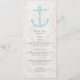 Parfait pour un mariage nautique, cette carte de menu Mariage d'Ancres rustique avec une ancre turquoise sur un look arrière - plan marbré beige clair. Cette carte de menu classique et simple est facile à customiser avec vos détails mariages. Pour plus d'options de personnalisation, cliquez sur Personnaliser.