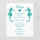 Ajoutez un peu de plaisir à vos tables avec cette jolie carte turquoise à cheval de mer. Cette carte amusante présente un hippocampe turquoise turquoise dessiné à la main, qui met en évidence vos options alimentaires imprimées en complément du script turquoise vert et des polices faciles à lire. Ce menu hippocampe est parfait pour * mariages d'été, de plage et nautiques, dîners de répétition, douches nuptiales * événements d'affaires * fêtes * collectes de fonds & organismes de bienfaisance * cérémonies de remise de prix
