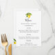 Design de typographie chic avec citrons rustiques aquarelles, carte de menu mariage avec script et accents décoratifs. Le dos de la carte de menu est assorti à l'arrangement citron et feuille.