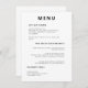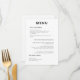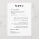 Une carte de menu mariage unique avec une touche moderne. Une typographie contemporaine propre et un jeu de couleurs noir et blanc - noms et date mariage au dos. Utilisez-le pour votre réception de mariage ou un dîner de répétition. Tous les éléments de texte et les couleurs peuvent être customisés pour s'adapter à votre besoin et à votre thème mariage.