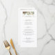 Menu simple avec entrées, entrées et desserts. Cette simple végétation boisée s'accorde avec la Rustic Woodland Green Mariage Suite