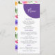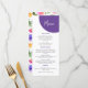 Eléments : couronnes de fleurs tropicales entourant vos noms et tail. Les noms sont dans un script fantaisiste, tandis que les détails sont dans une police sans serif moderne. Couleurs : violet, rose, jaune, vert, orchidée, prune, magenta, fuschia, citron, Thèmes : clair, tropical, plage, destination, romantique, bohème, gai, moderne, décontracté. Collection : Décontracté vibrant Magenta Violet Jaune Collection de Mariages Type de produit : Menu