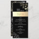 Vintage, botanique, boho, chic, calligraphie, menu mariage moderne, élégant noir et or avec dentelle dorée fleurie.